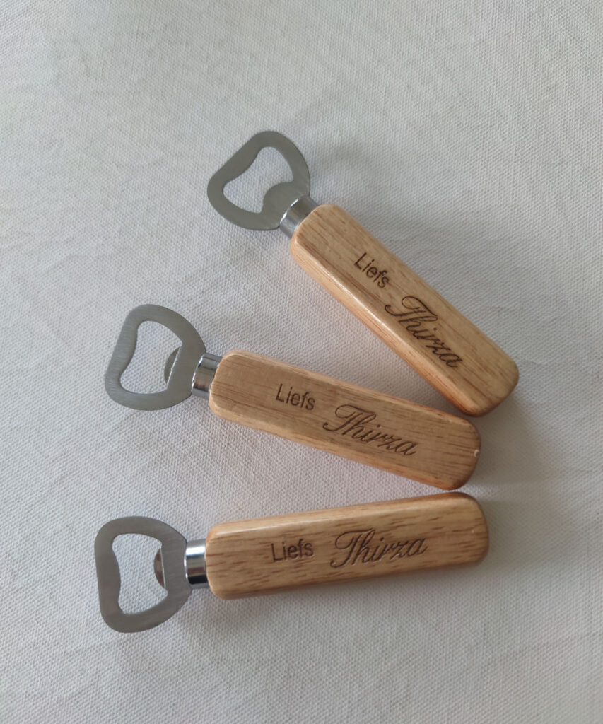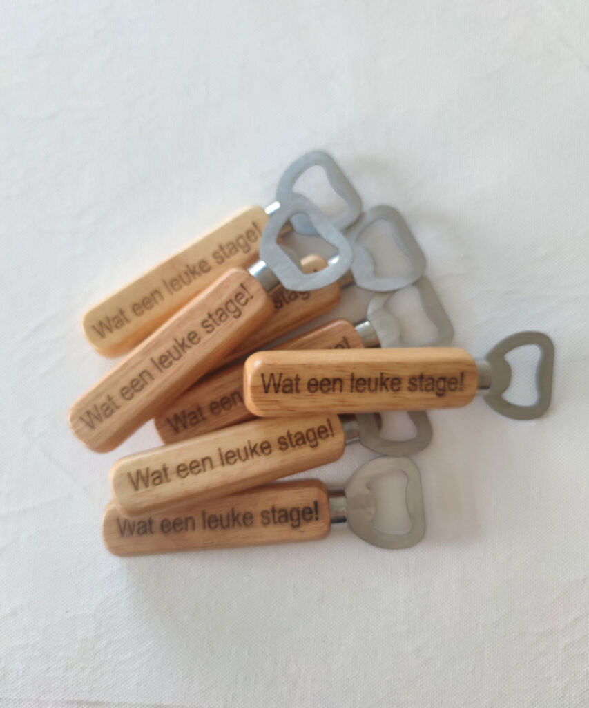 Een kleine verrassing met grote impact: een bieropener met persoonlijke gravure. Handig, stoer en ideaal als cadeautje voor hem – bijvoorbeeld voor een verjaardag of als bedankje.