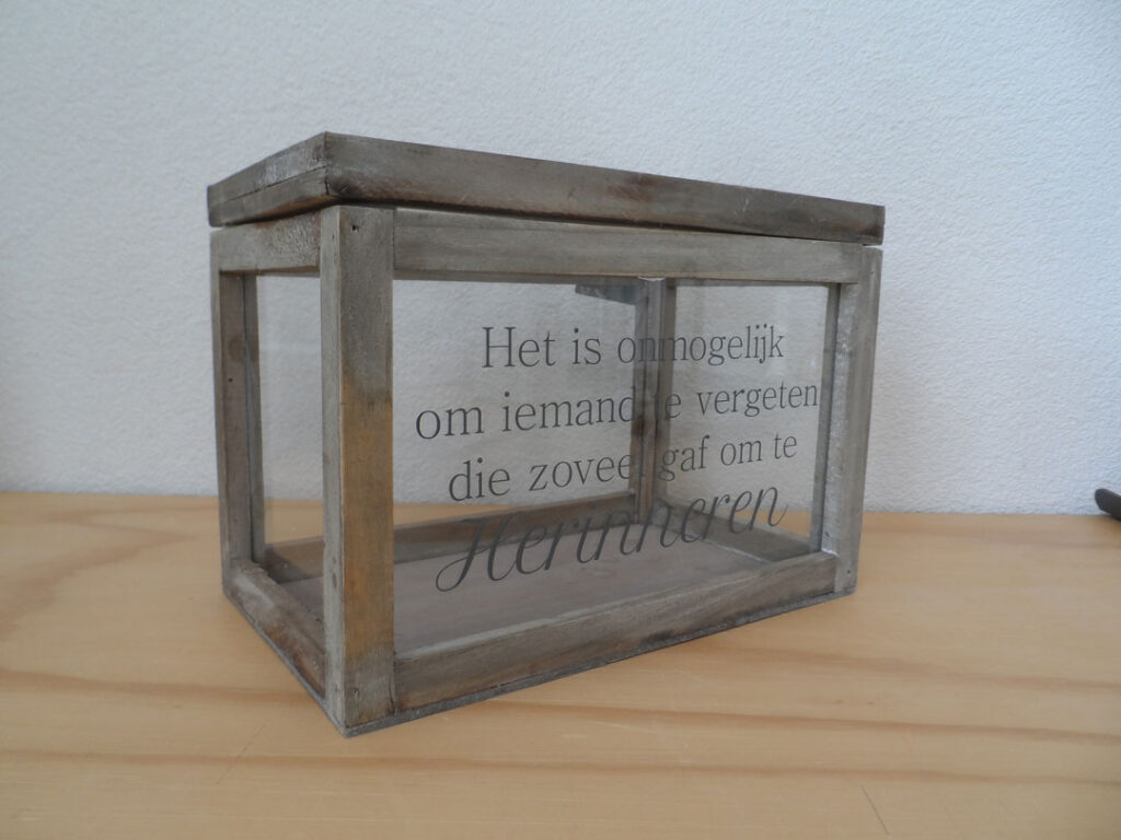 Een koffertje of glazen kistje: om de herinneringen in te bewaren
