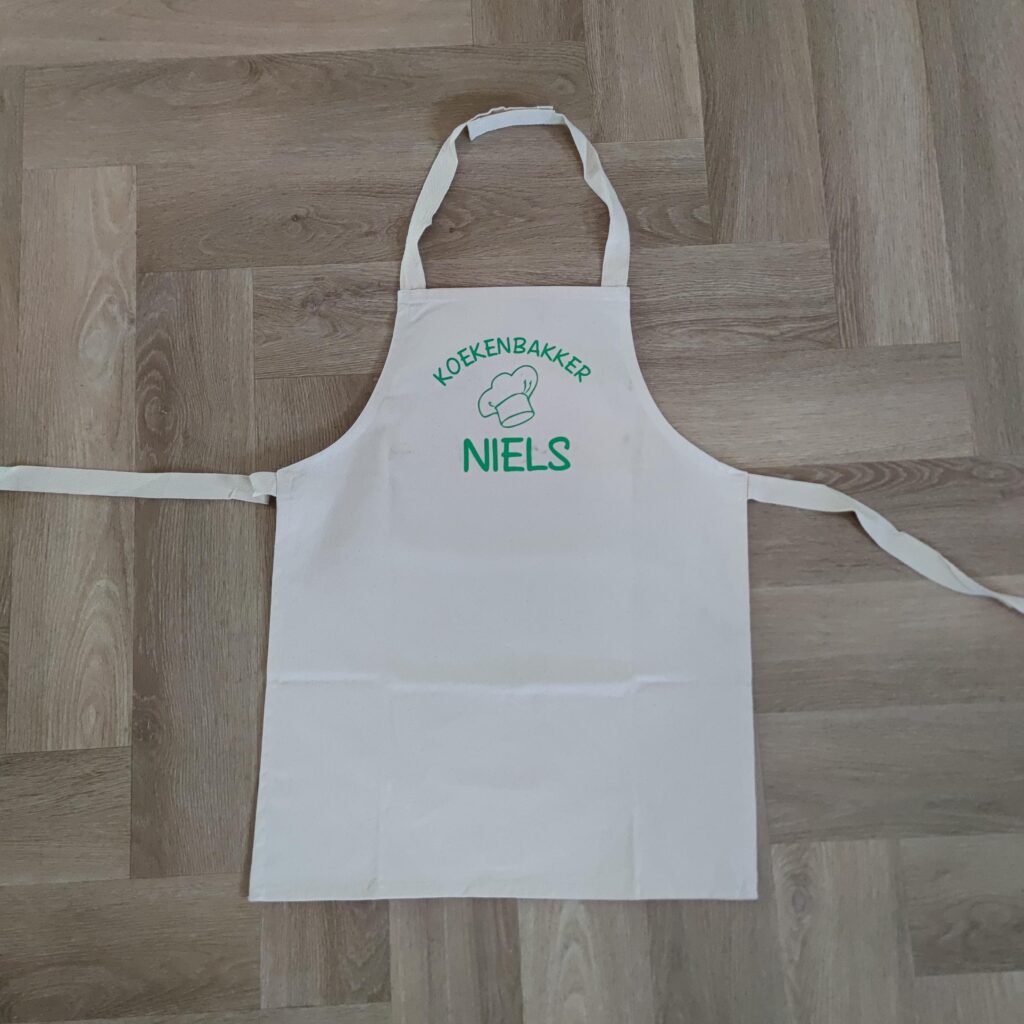 Het is mogelijk om diverse soorten textiel te laten bedrukken, zoals babyrompers, mutsjes, slabben, schorten, petten, tassen of paraplu’s. De opdruk kan volledig naar je eigen wens worden samengesteld, met keuze uit verschillende kleuren. Neem gerust contact op voor meer informatie over de mogelijkheden. Ik maak graag een ontwerp voor je.