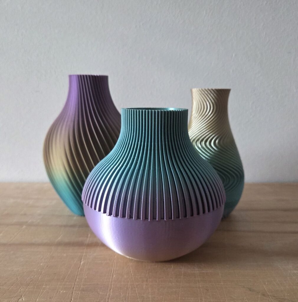 Vaasjes: De 3D-geprinte vaasjes combineren strak design met een warme uitstraling.